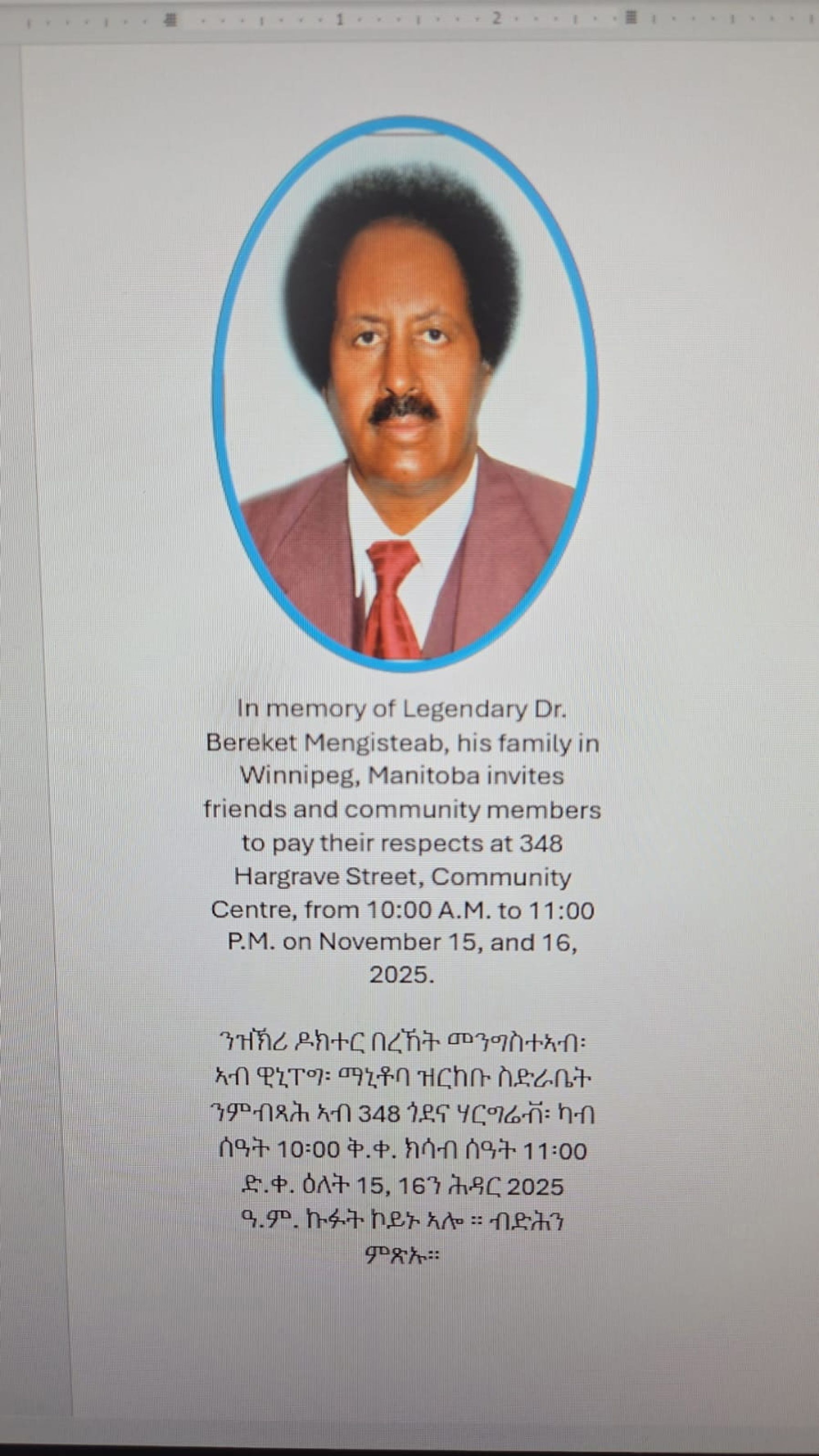 Remembering Dr Bereket Mengsteab